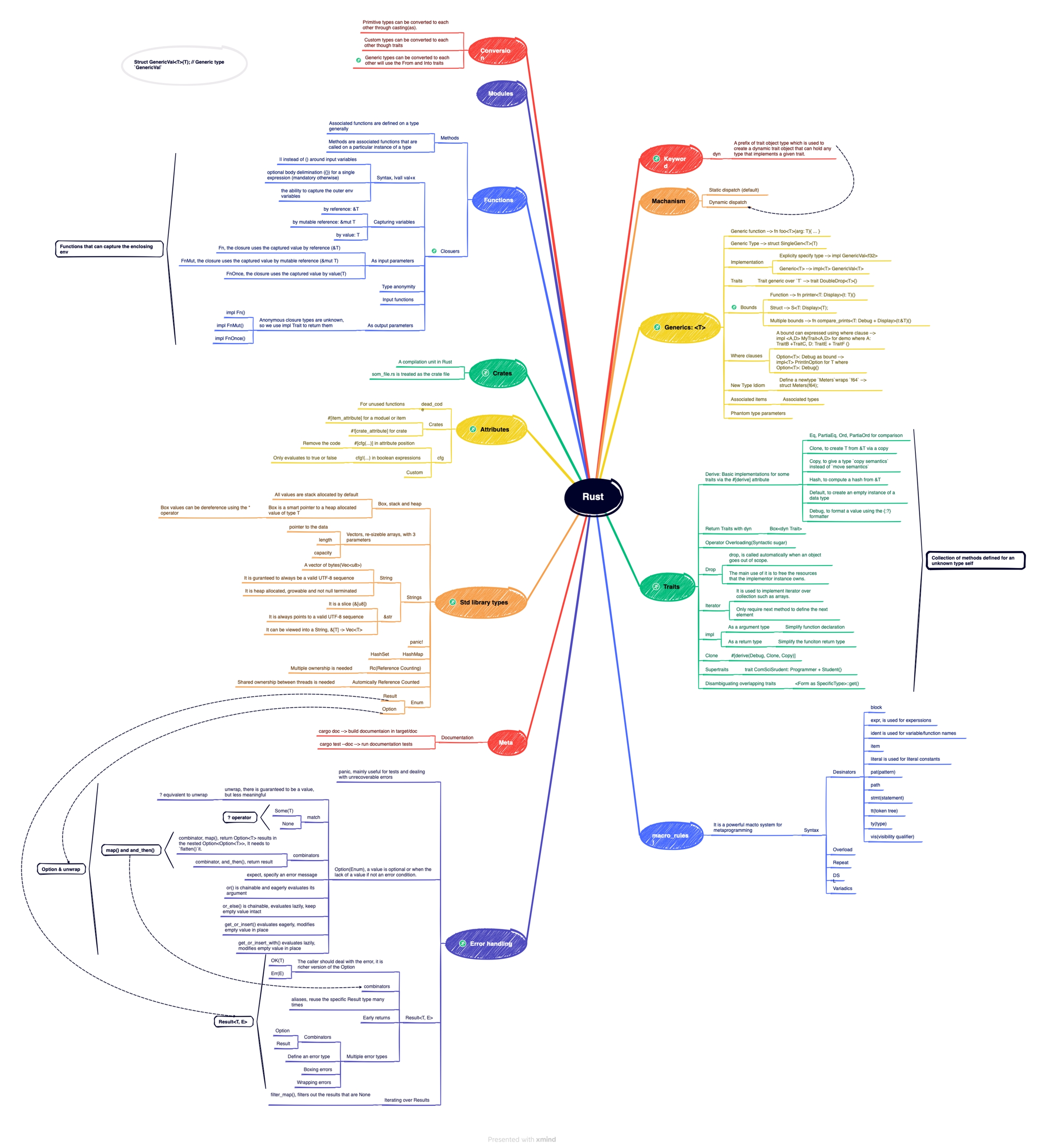 So, here I list some of the features of Rust that are helpful for coding in Rust. Here is the link of the mind map
